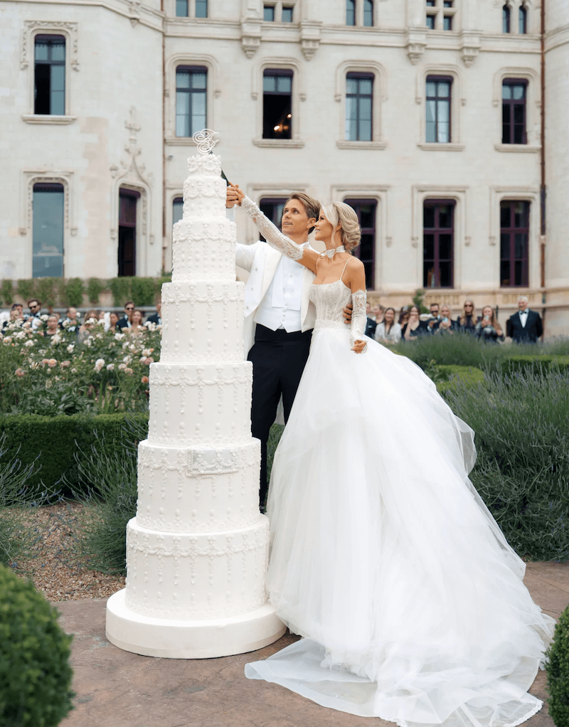 The chateau’s unique heritage was a key element in the couple’s design choice. Its architectural style is so evocative of classic romance that it was famously used as a reference point for the animators behind Disney’s Beauty and the Beast. Perfect setting for their Vogue Wedding. The atmosphere of romance meant the couple could focus on personal, classic details rather than excessive décor, allowing the chateau’s majestic stone and history to shine.